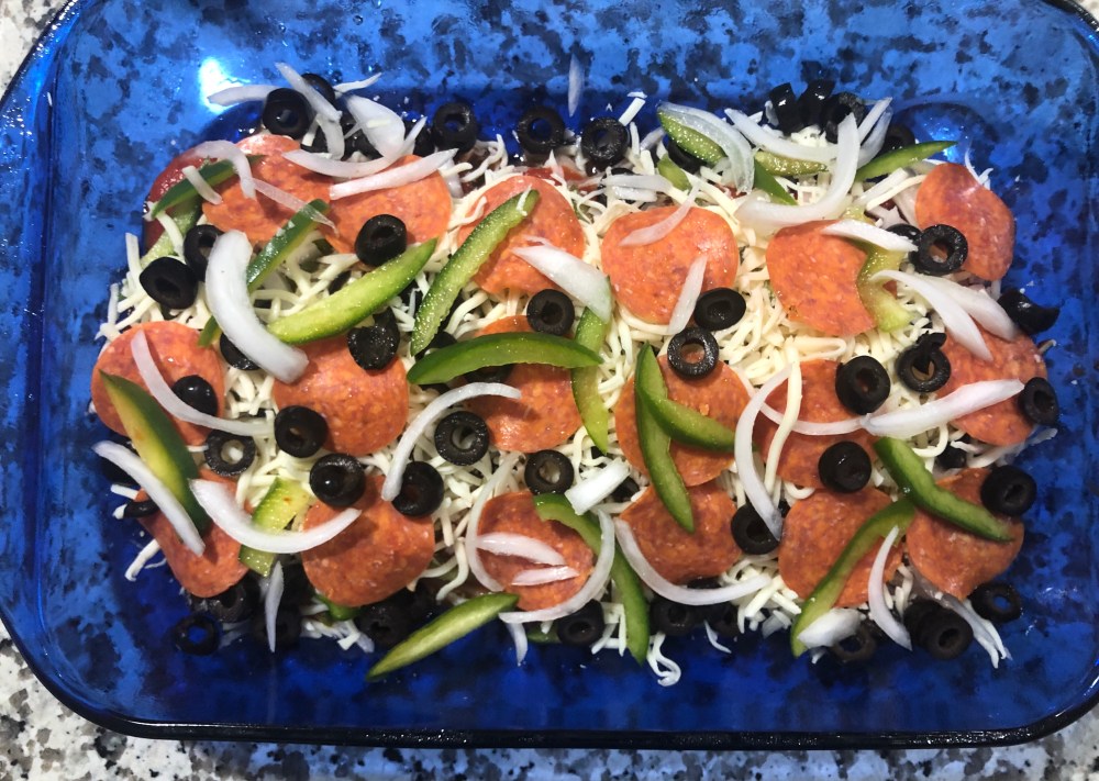 5. Add pepperoni and remaining veggies.