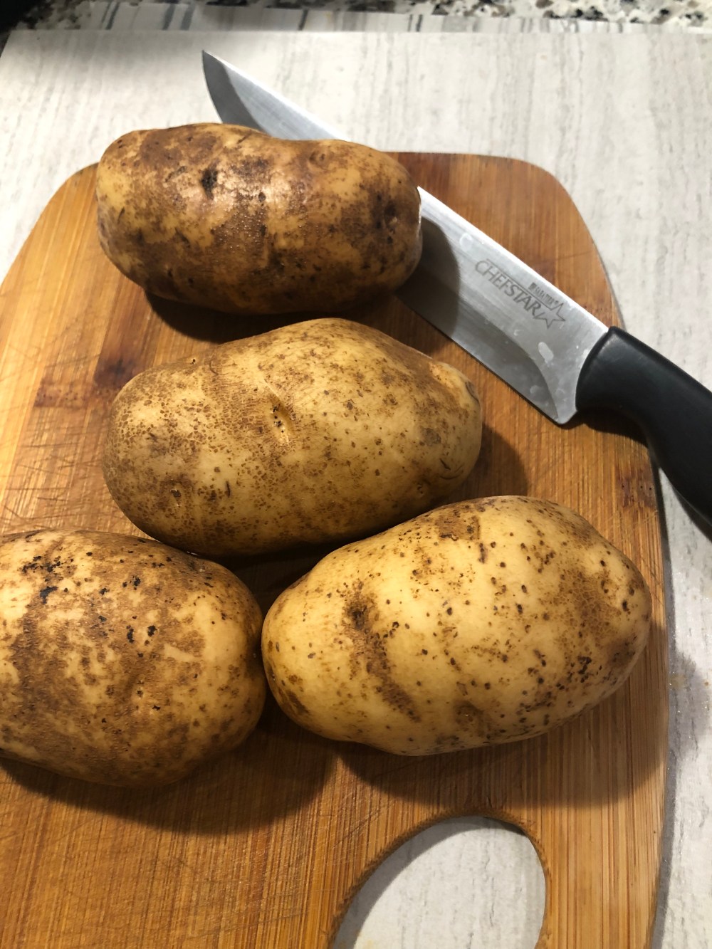 Start by washing potatoes. I used 4 small ones.